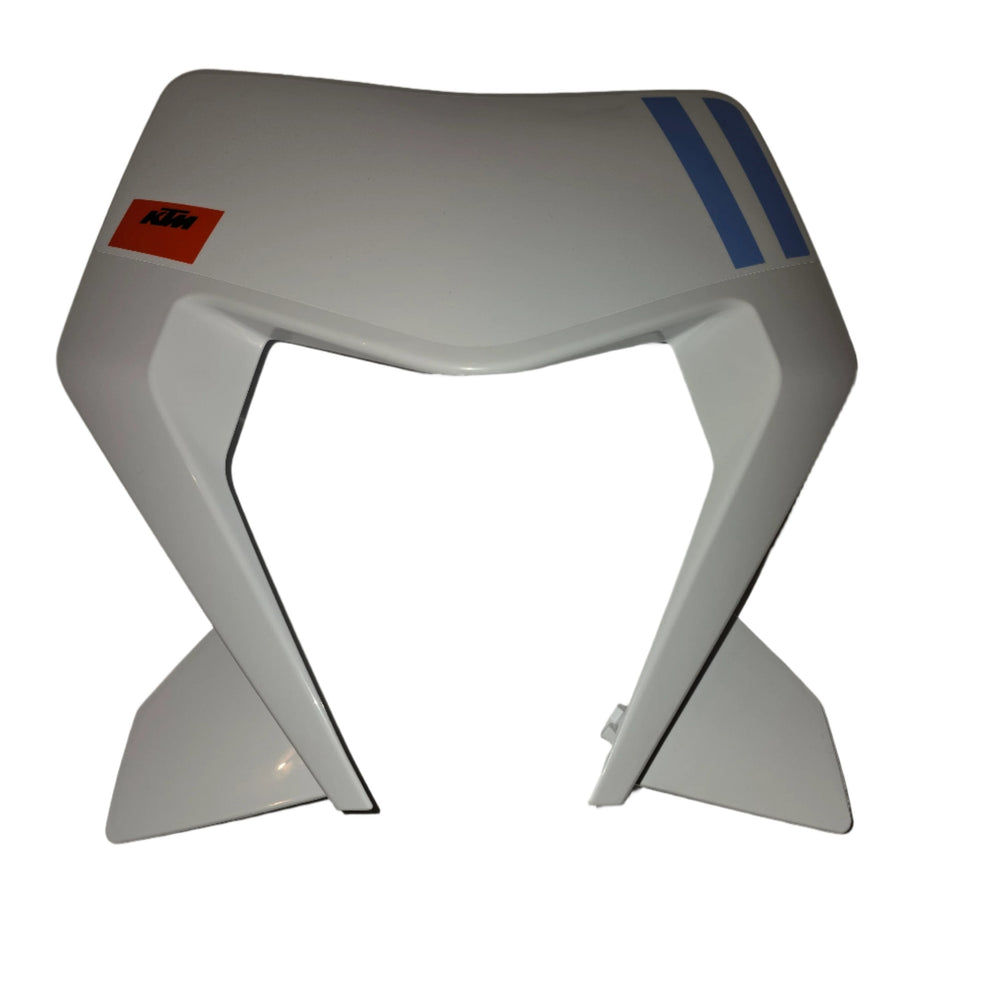Featuring the official Six Days graphics, including the KTM logo and signature blue stripes, this mask ensures your bike retains its premium factory look. The precise fitment allows for a straightforward installation onto the headlight carrier, ensuring a secure and vibration-free mount during your rides.